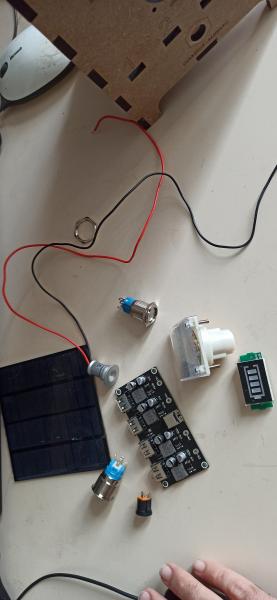 Prototype de boîte avec petit panneau photovoltaïque pour de la charge de petits appareils de type téléphone, liseuse, lampe...