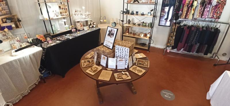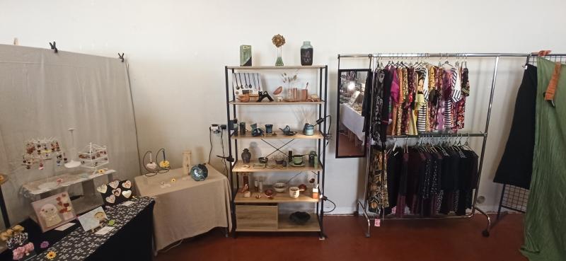 Collectifs des Rues des Arts 2024, 6 boutiques artisanales, ouvertes du 1er juillet au 31 août 2024 à Saint-Yrieix (87), de 10h à 19h tous les jours. La maison des créatives (52 boulevard de l'hôtel de ville), Nulle part ailleurs (23 rue du marché), Au fil de l'Art (Halle droite place du marché), L'étincelle créative (Halle centre place du marché), Les créateurs de bonheurs (Halle gauche place du marché), Pépites (4 rue Emile Frange), sans oublier Le Clac devenu une boutique permanente.