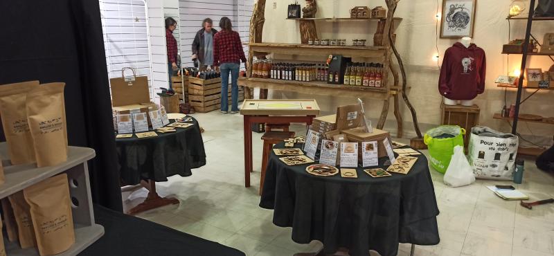 Céramique, tournage sur bois, illustration, feutre, broderie, cuir, jeux, couteaux, poterie, tee-shirts, vitraux, bijoux, biscuits, café, jus de pomme, liqueurs, miel, confitures, porcelaine, origami, carnets, mobilier en bois...