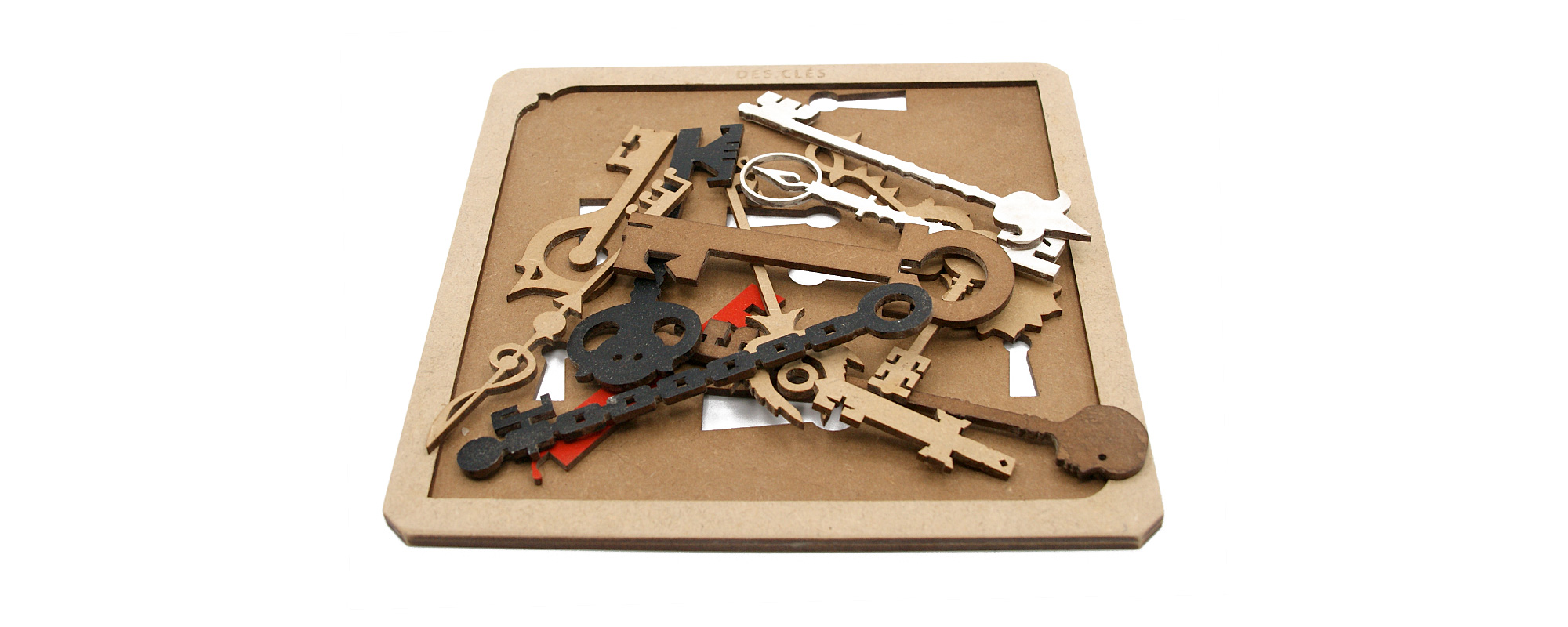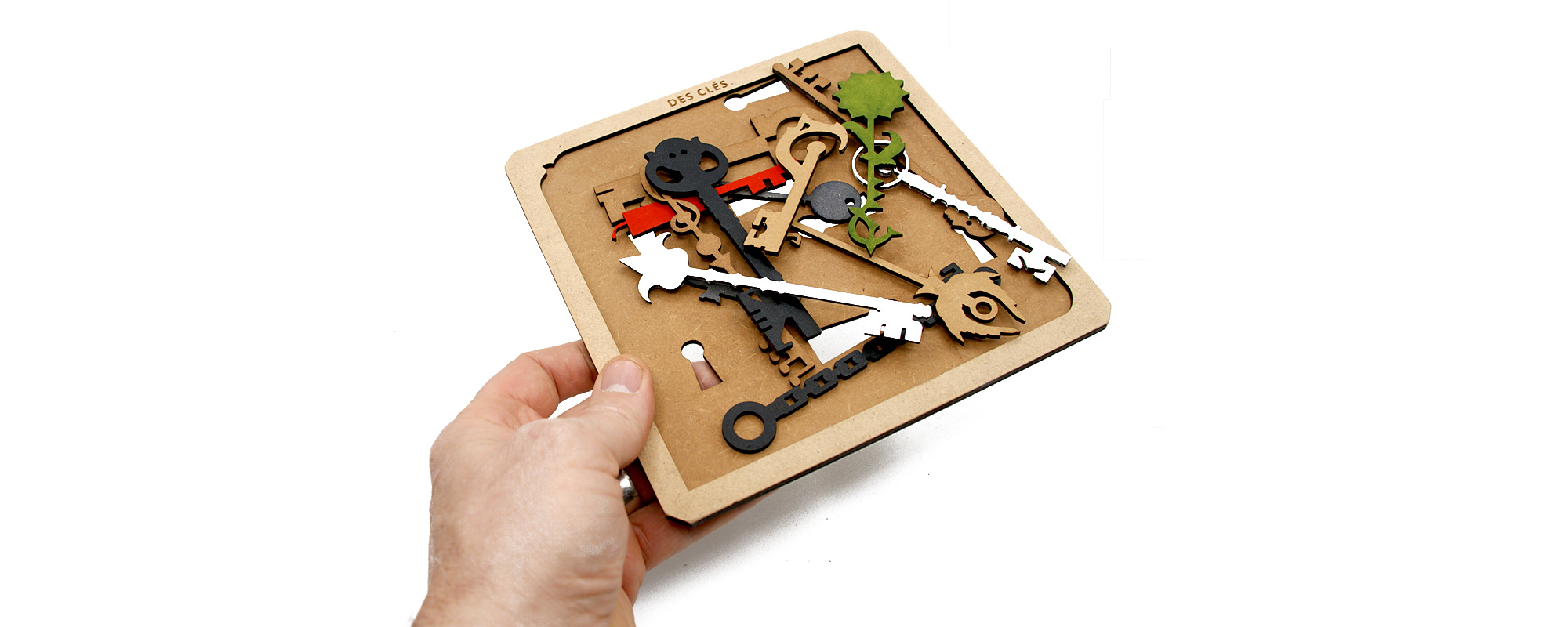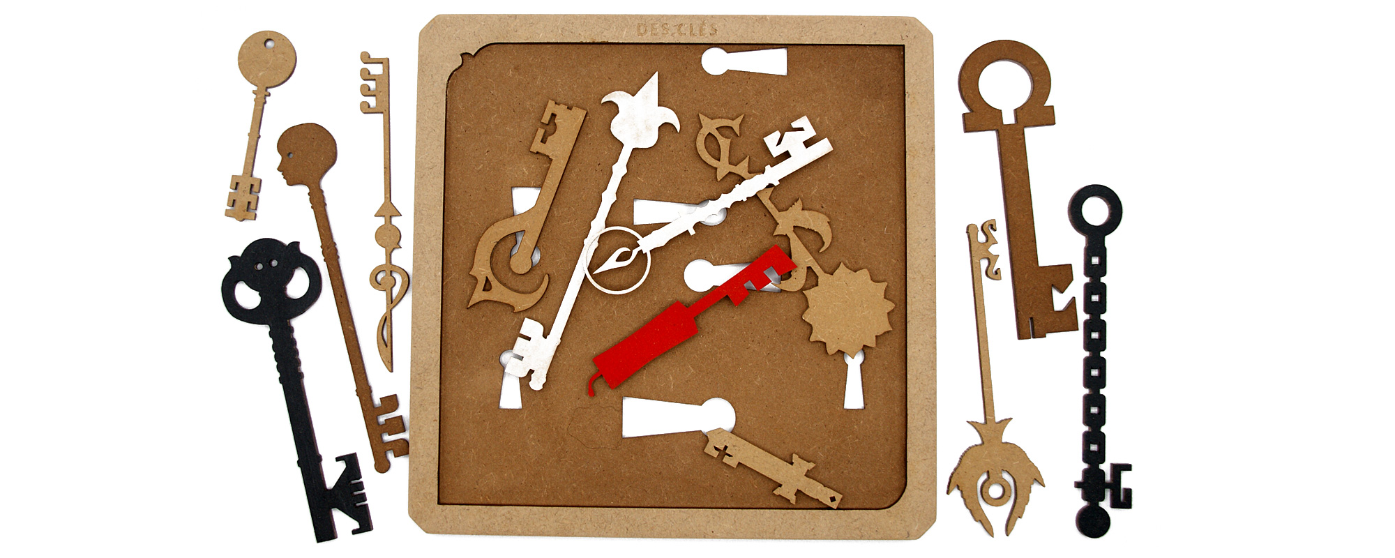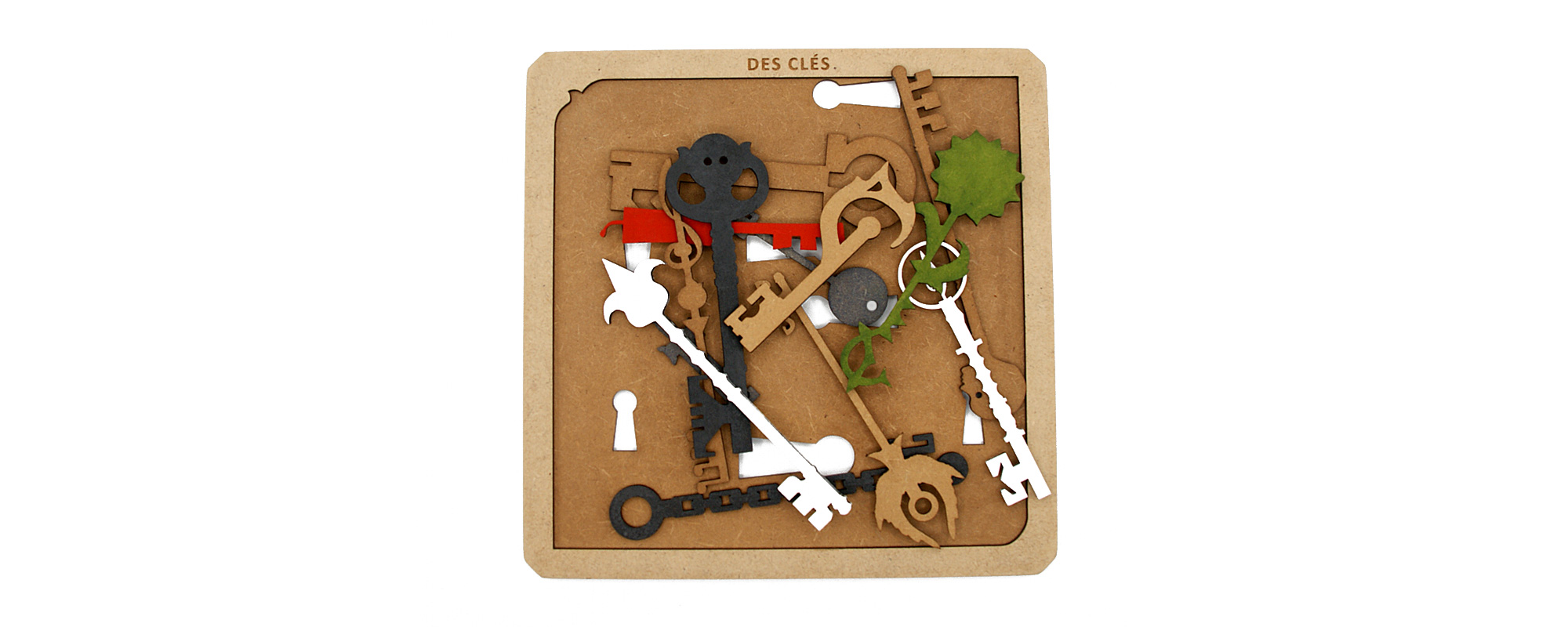 Les 13 clés doivent rentrer dans l’espace proposé sans forcer et surtout sans boucher les trous de serrure. Clin d'œil au comics Locke and Key.
