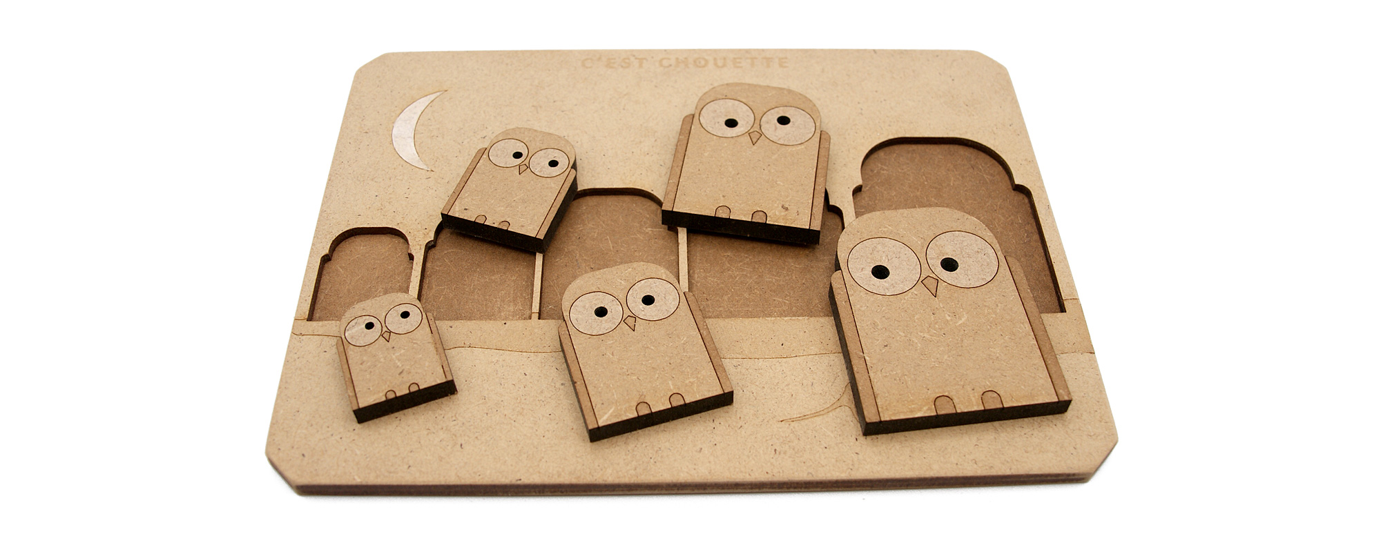 Jeu réalisé avec une découpe laser et du médium, collage avec colle à bois, teinture avec du brou de noix et de l'encre à l'eau. Conçu en France, en Limousin, en Haute-Vienne.