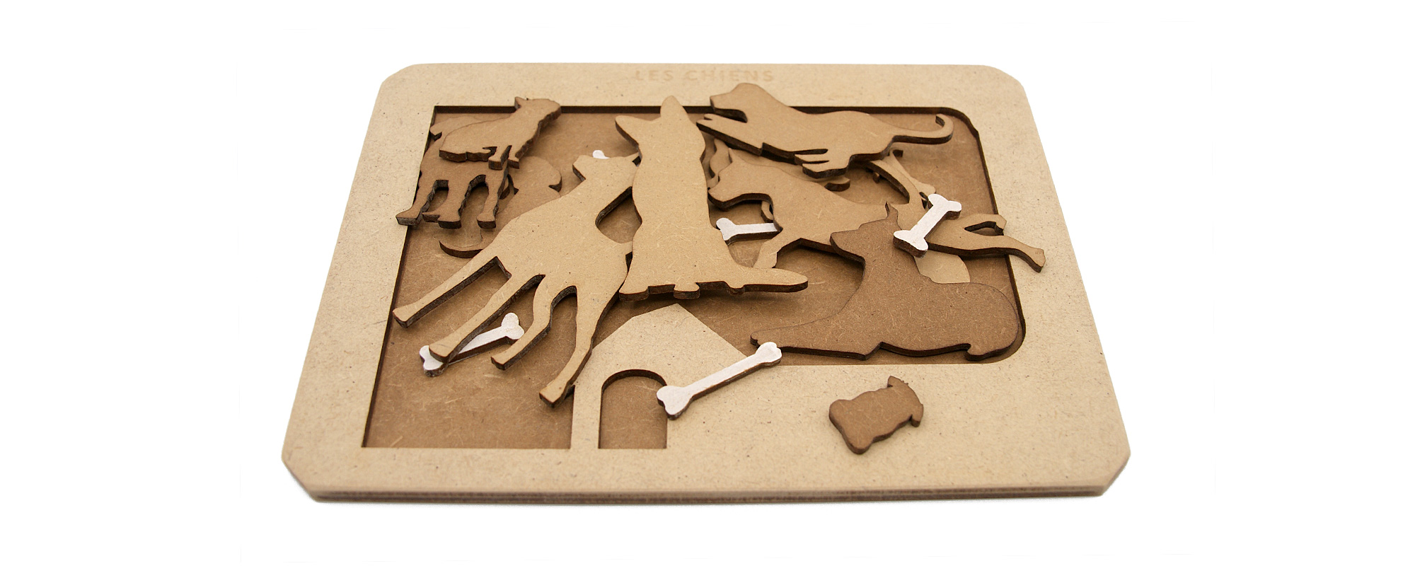 Jeu réalisé avec une découpe laser et du médium, du brou de noix et du collage avec colle à bois. Conçu en France, en Limousin, en Haute-Vienne.