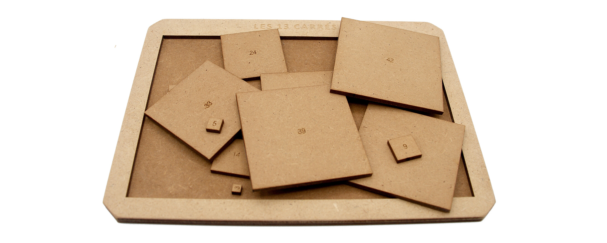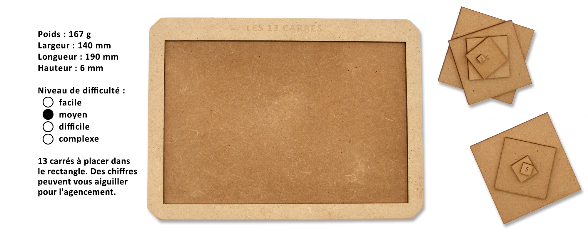 13 carrés à placer dans le rectangle. Des chiffres peuvent vous aiguiller pour l'agencement.