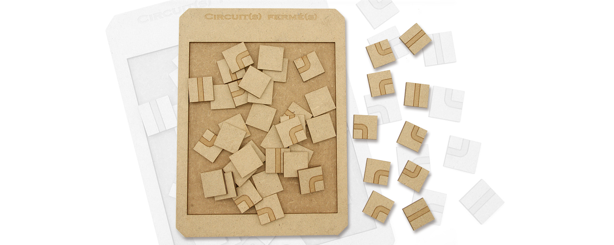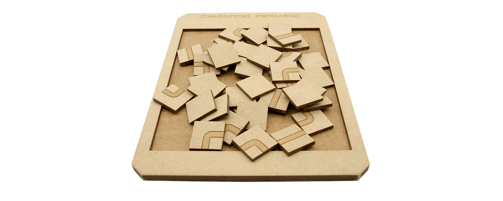 Jeu réalisé avec une découpe laser et du médium, collage avec colle à bois, teinture avec du brou de noix. Conçu en France, en Limousin, en Haute-Vienne.