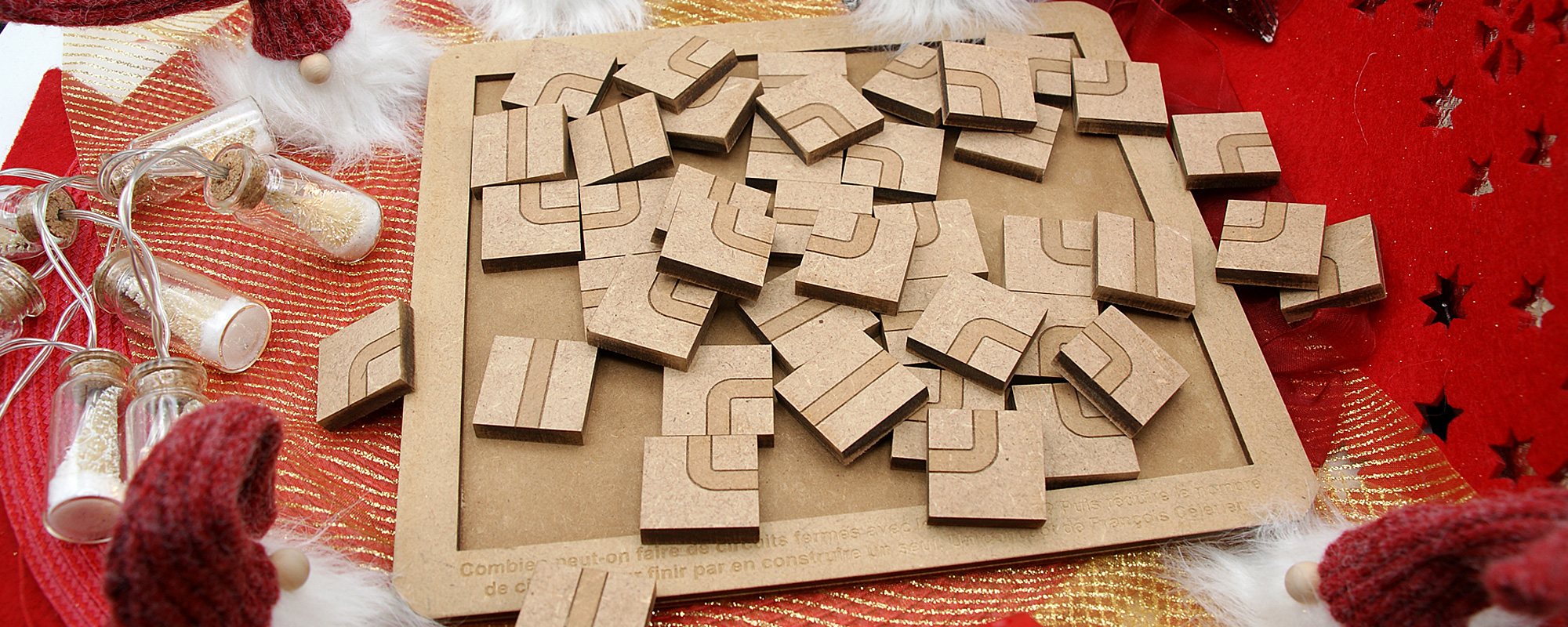 Jeu réalisé avec une découpe laser et du médium, collage avec colle à bois. Conçu en France, en Limousin, en Haute-Vienne.