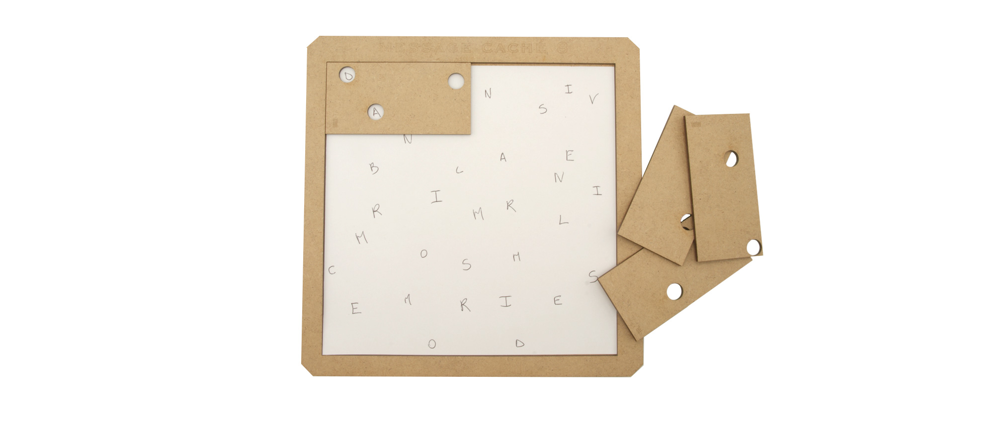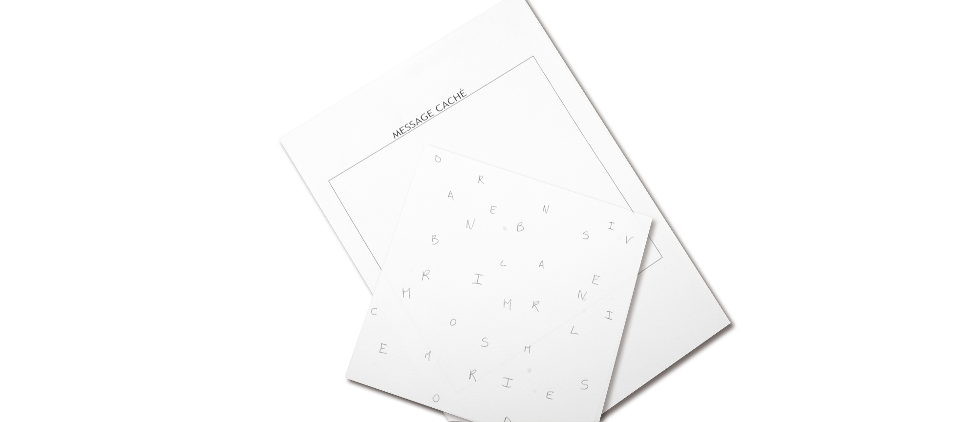 Imprimer la fiche message caché, découper le carré, poser le carré dans le plateau, puis recouvrer aléatoirement les tuiles ou avec un ordre précis.