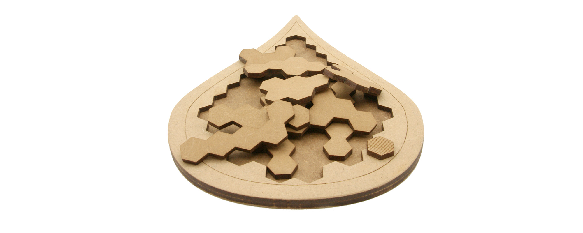 Plusieurs solutions sont possibles, dont une avec l'hexagone seul au centre. 12 pièces penta hexagonales.