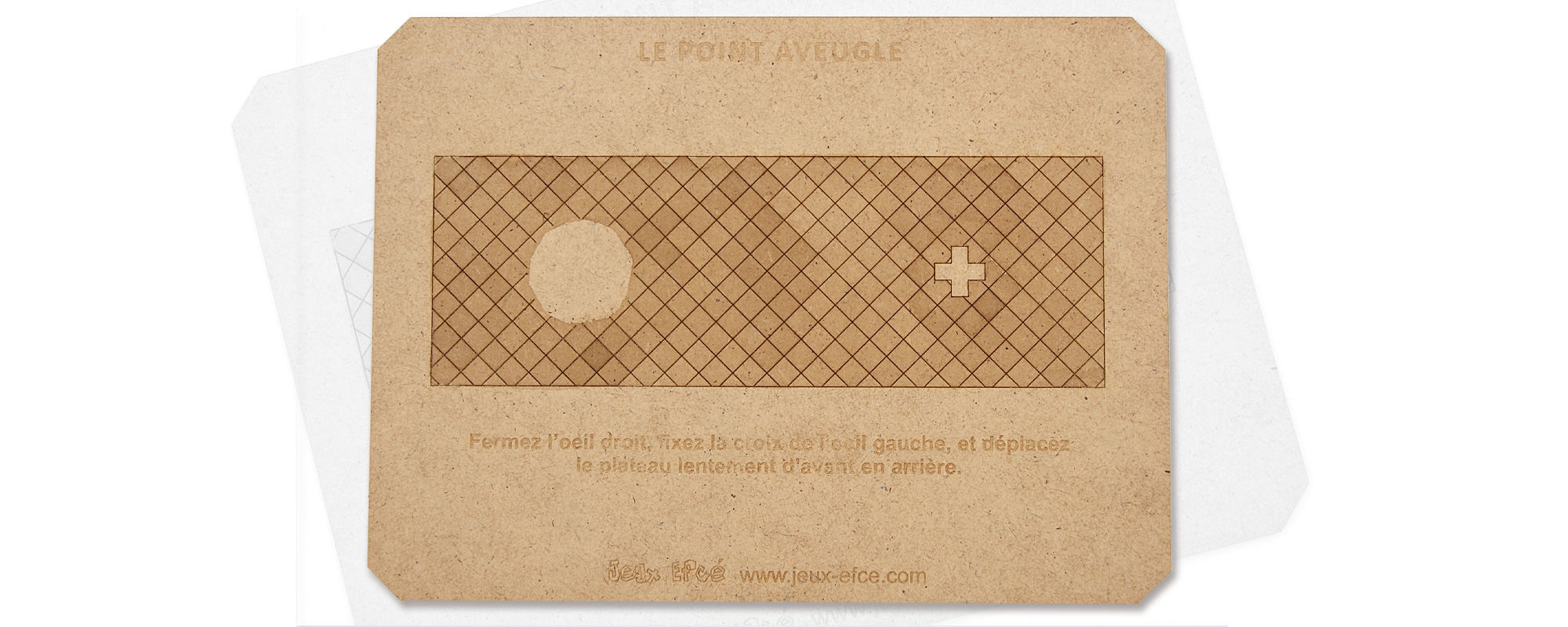 Le point aveugle ou tache aveugle ou tache de Mariotte ou papille optique ou disque optique correspond à la partie de la rétine où s'insèrent le nerf optique qui relaye les influx nerveux de la couche plexiforme interne jusqu'au cortex cérébral, ainsi que les vaisseaux sanguins arrivant à l'œil et quittant l'œil. Dans la pratique, il s'agit donc d'une petite portion de la rétine qui est dépourvue de photorécepteurs et qui est ainsi complètement aveugle (source wikipédia).