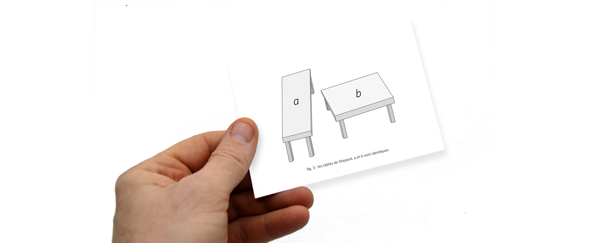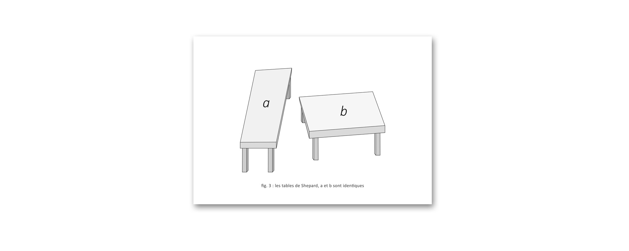 L’illusion est basée sur un dessin de deux parallélogrammes, identiques à part une rotation de 90 degrés. Cependant, lorsque les parallélogrammes sont présentés sous forme de tables, nous les voyons comme des objets dans un espace tridimensionnel. La « table » de gauche semble longue et étroite, avec sa dimension la plus longue s'éloignant à l’opposé de nous. L'autre « table » semble presque carrée, car nous interprétons sa dimension plus courte comme un raccourci de perspective. (Wikipedia)