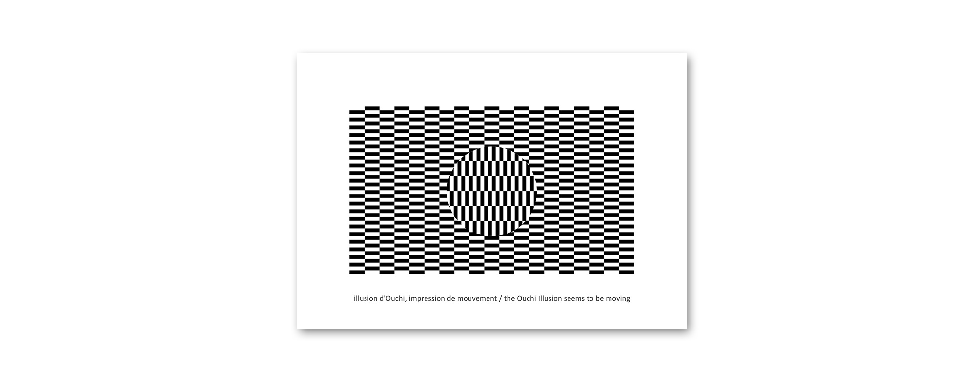 L'illusion d'Ouchi, nommée d'après son inventeur l'artiste japonais Hajime Ouchi qui l'a publié pour la première fois dans un livre de graphisme en 1973, joue avec la perception du mouvement.