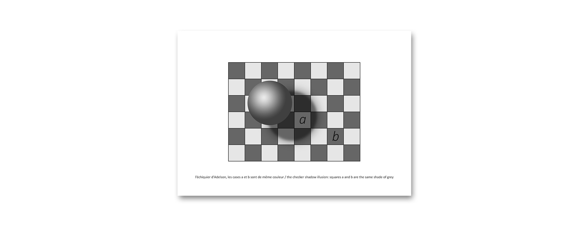 En 1995, Edward Howard Adelson, neuroscientifique américain, publie son échiquier. Deux cases, pourtant d'une même couleur, nous semblent différentes. Sur ce damier, les carrés A et B sont exactement de la même couleur.