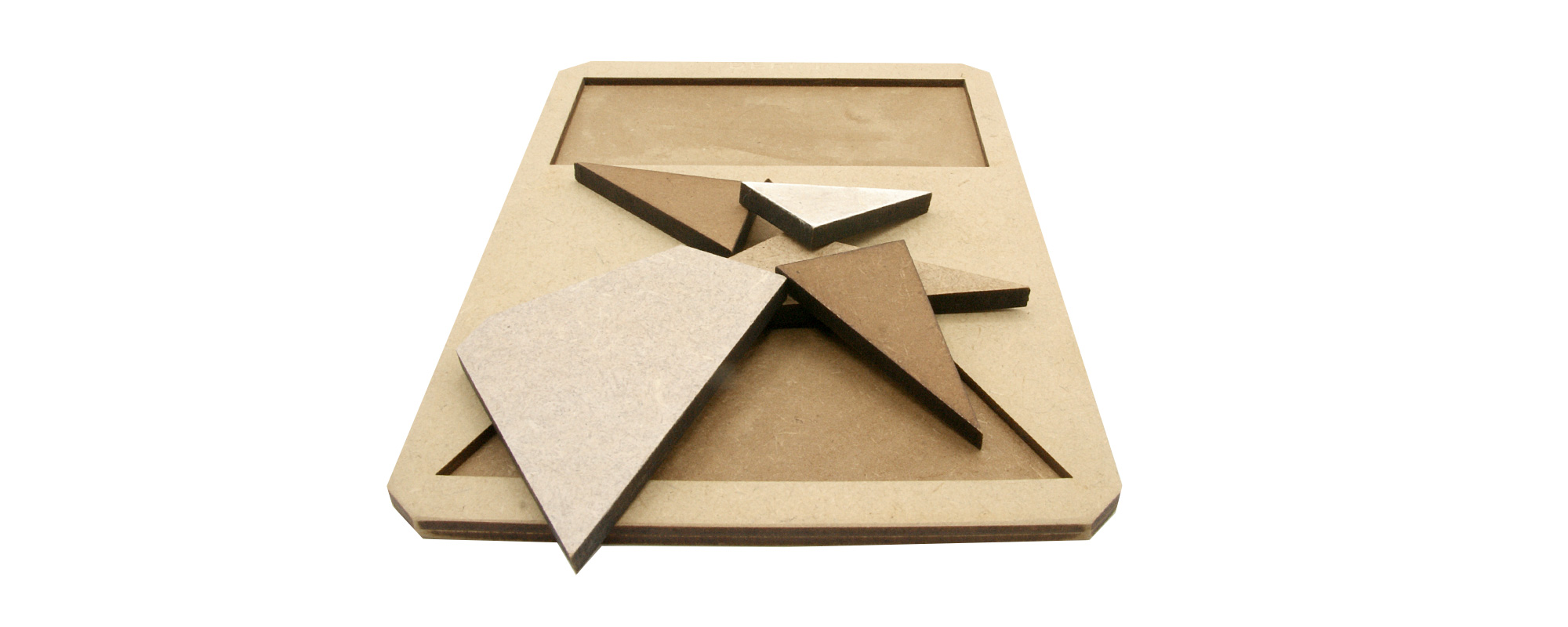 5 pièces faciles à manipuler, sont à placer dans le rectangle puis dans le triangle, soit 2 puzzles à réaliser.