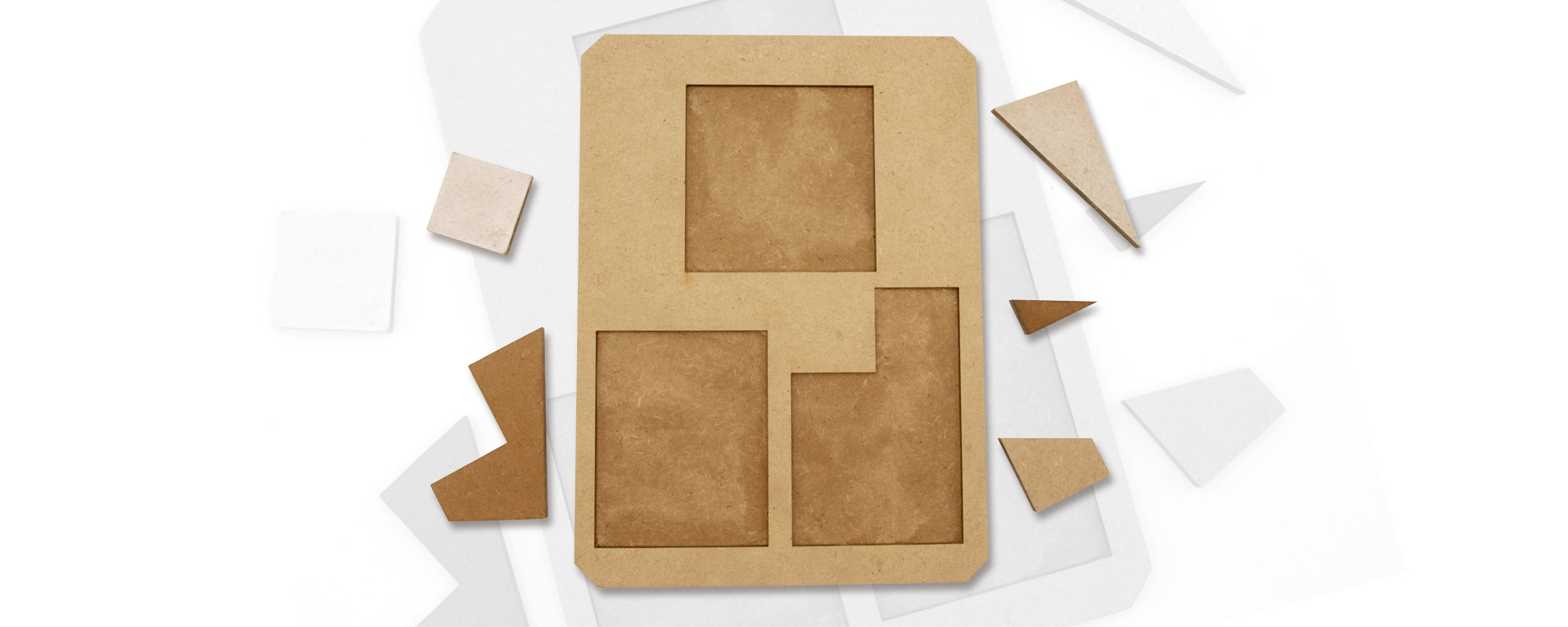 5 pièces faciles à manipuler, sont à placer dans 3 puzzles à réaliser.