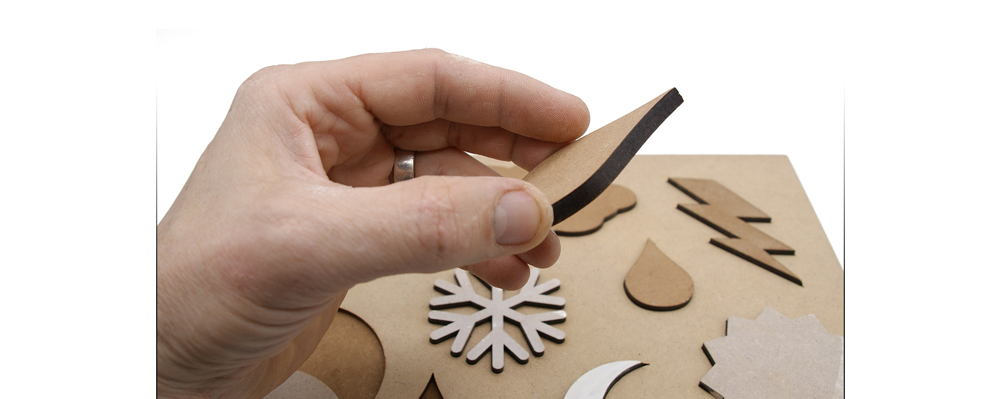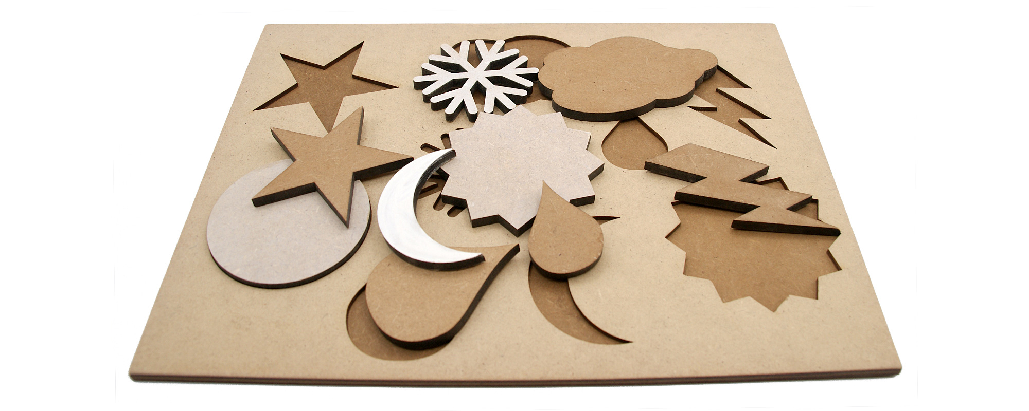 Jeu réalisé avec une découpe laser et du médium, collage avec colle à bois, teinture avec du brou de noix. Conçu en France, en Limousin, en Haute-Vienne.