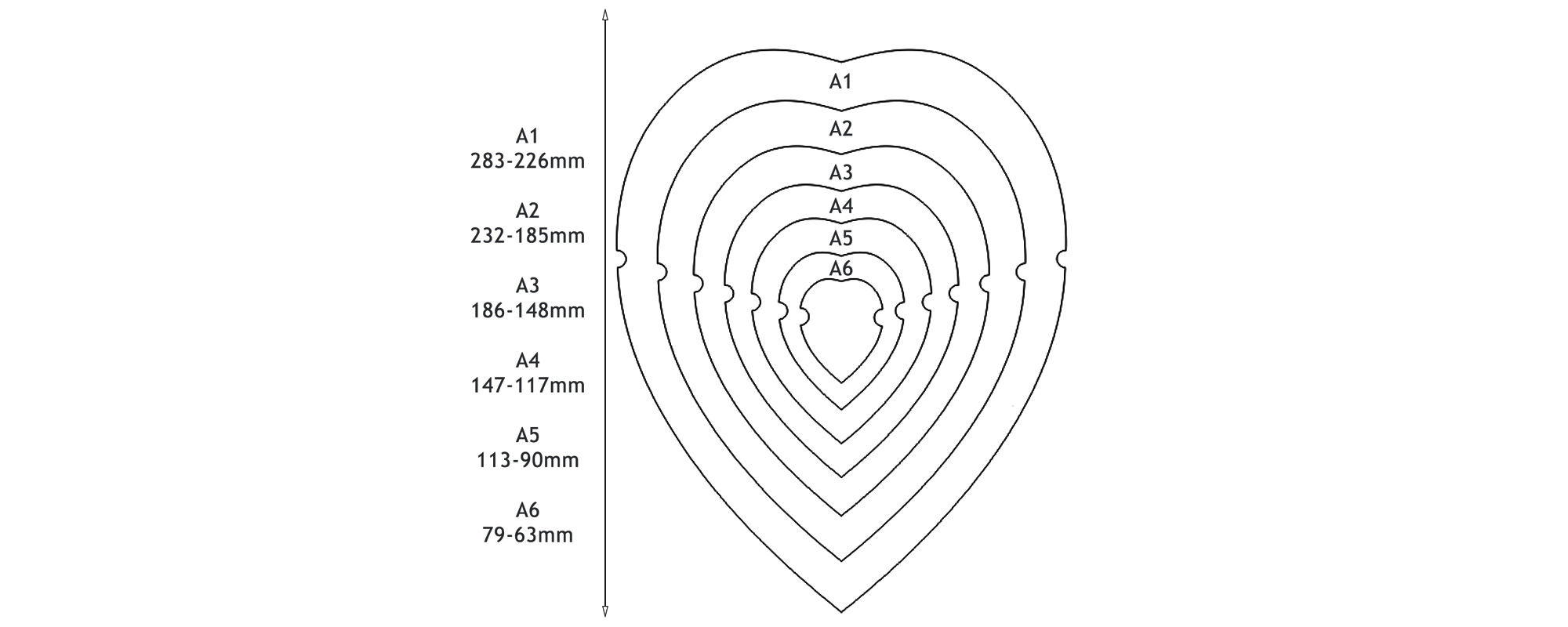 Le format est 283-226 mm (hauteur - Largeur), 2 découpes sont fournies avec un cordon élastique.
