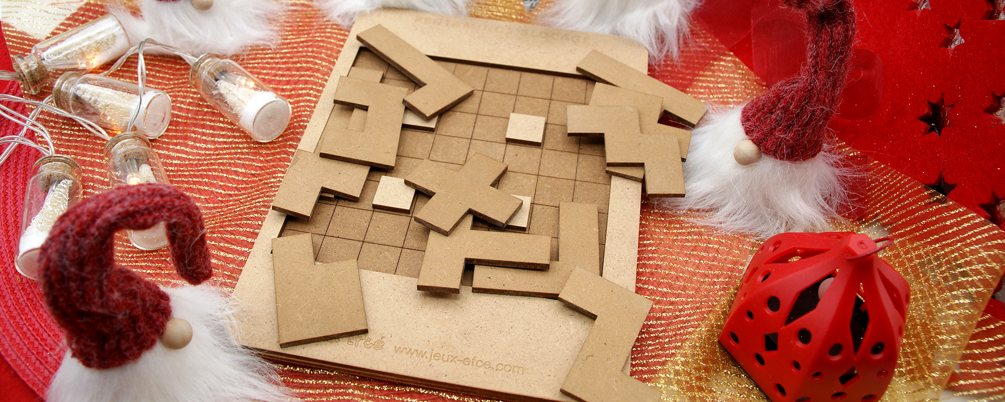 Etaler les pentaminos sur la table, près du plateau. Le 1er joueur est tiré au sort, ou c'est le plus jeune qui commence.