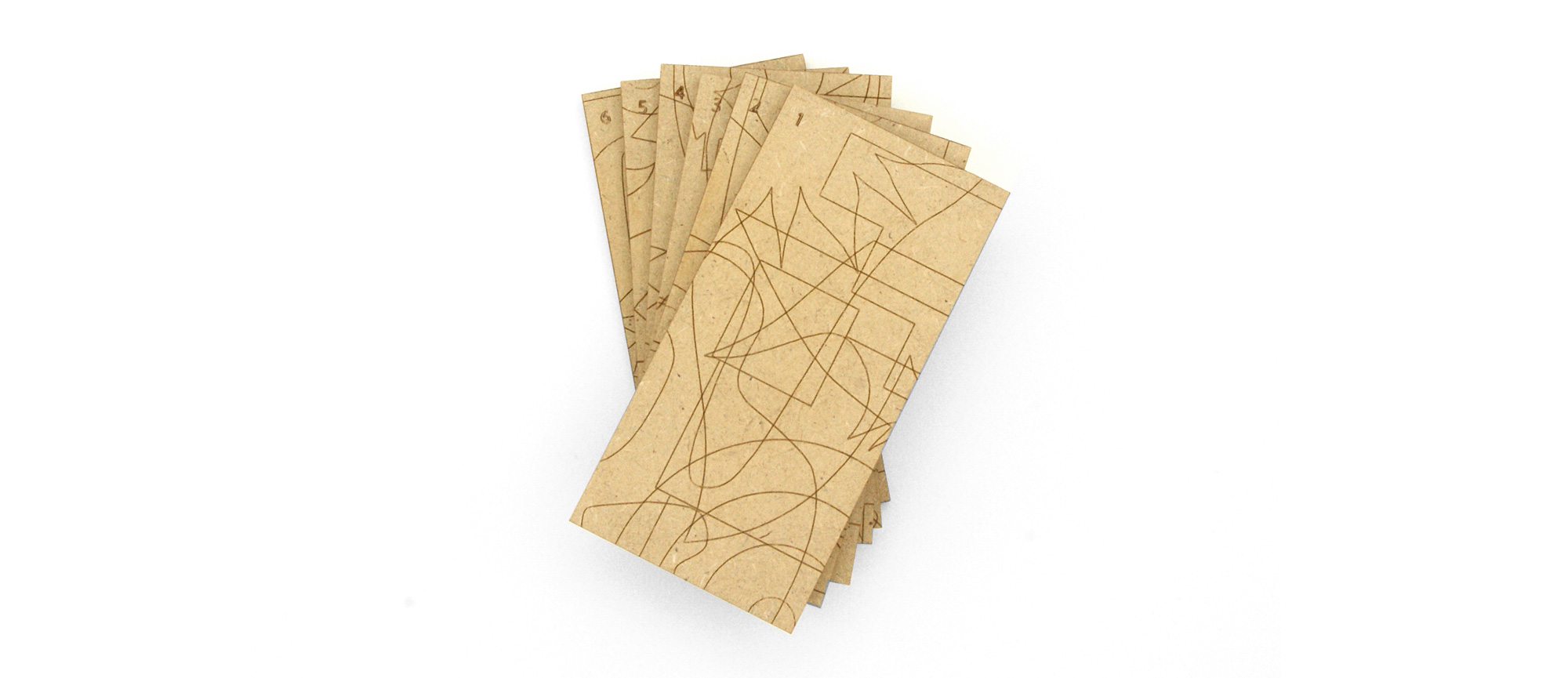 6 tuiles gravées recto-verso. en les assemblant sans les superposer, trouver les objets cachés, les formes, les animaux... avec 2, 3, 4, 5, voir 6 tuiles.