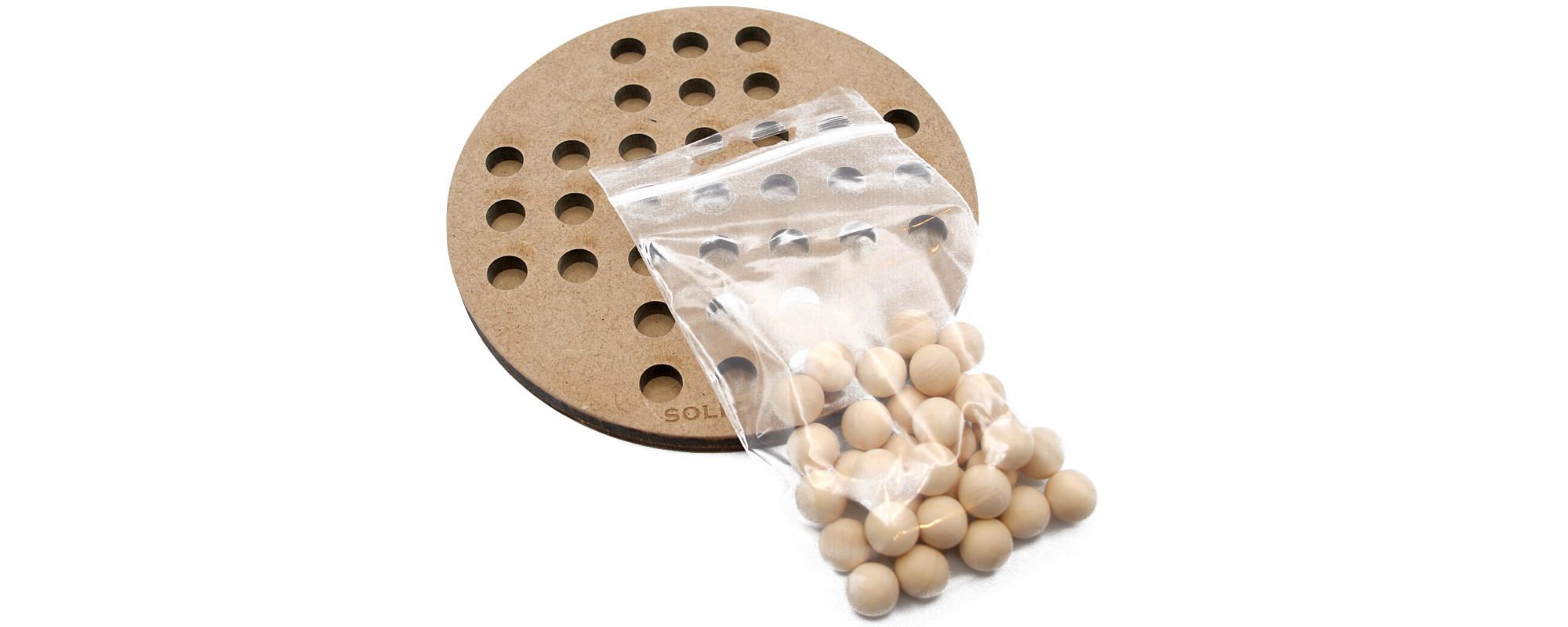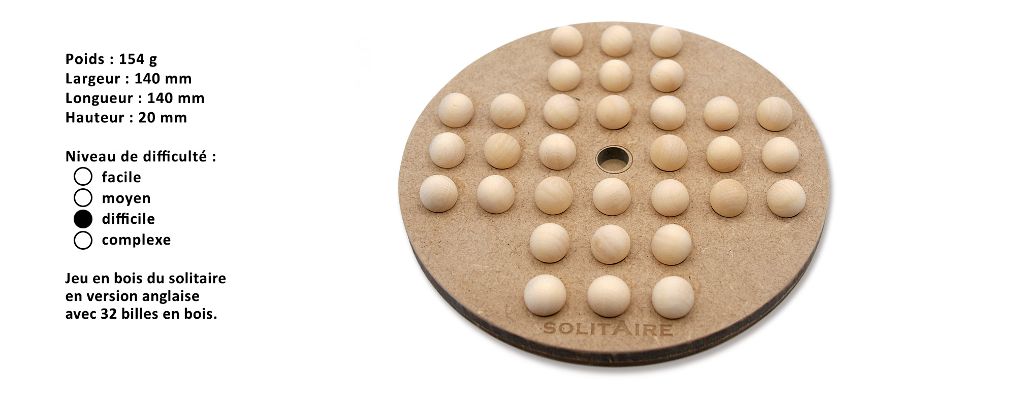 Jeu en bois du solitaire en version anglaise avec 32 billes en bois.