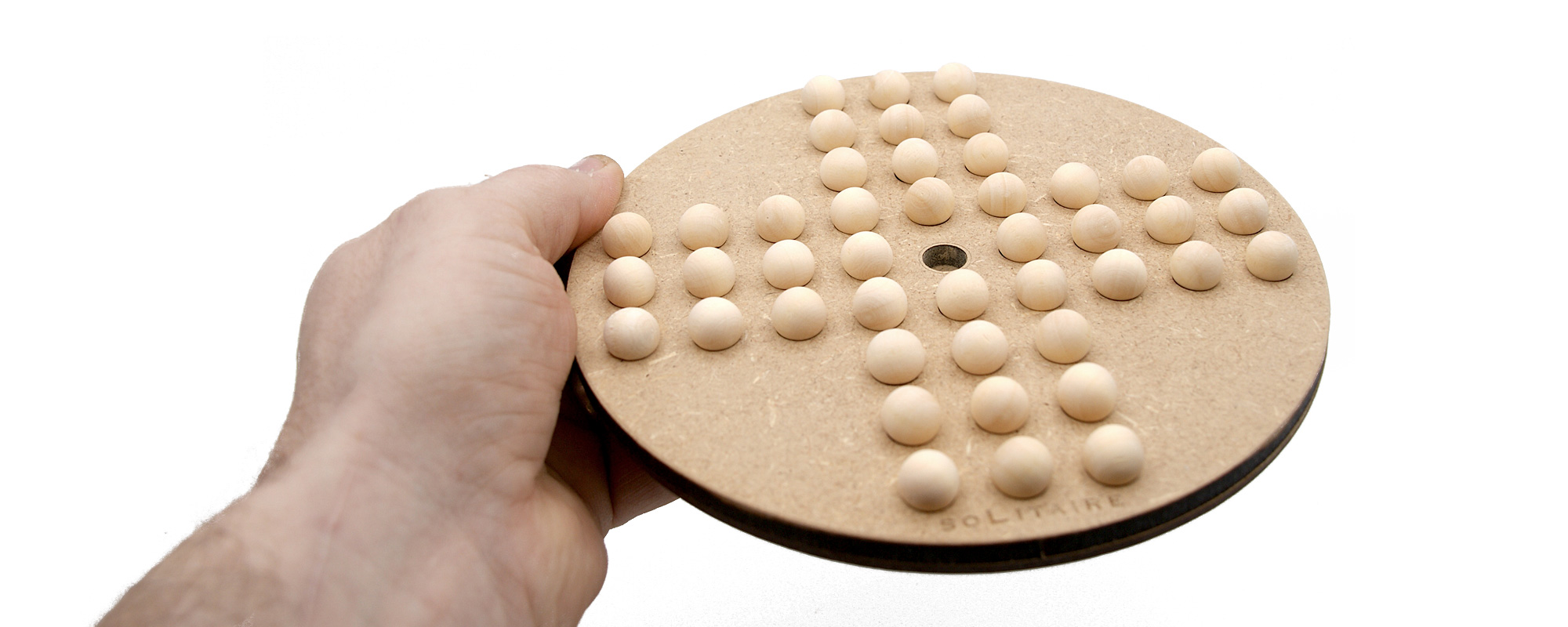 L'origine exacte du solitaire est inconnue. Il est peut-être la réduction à un seul joueur d’un jeu de pions de type « chasse », comme le jeu du renard et des poules. La forme en croix (ou basée sur une croix) du tablier, classique dans le jeu du renard et des poules, et la capture en sautant, comme aux dames, pourraient le laisser penser.