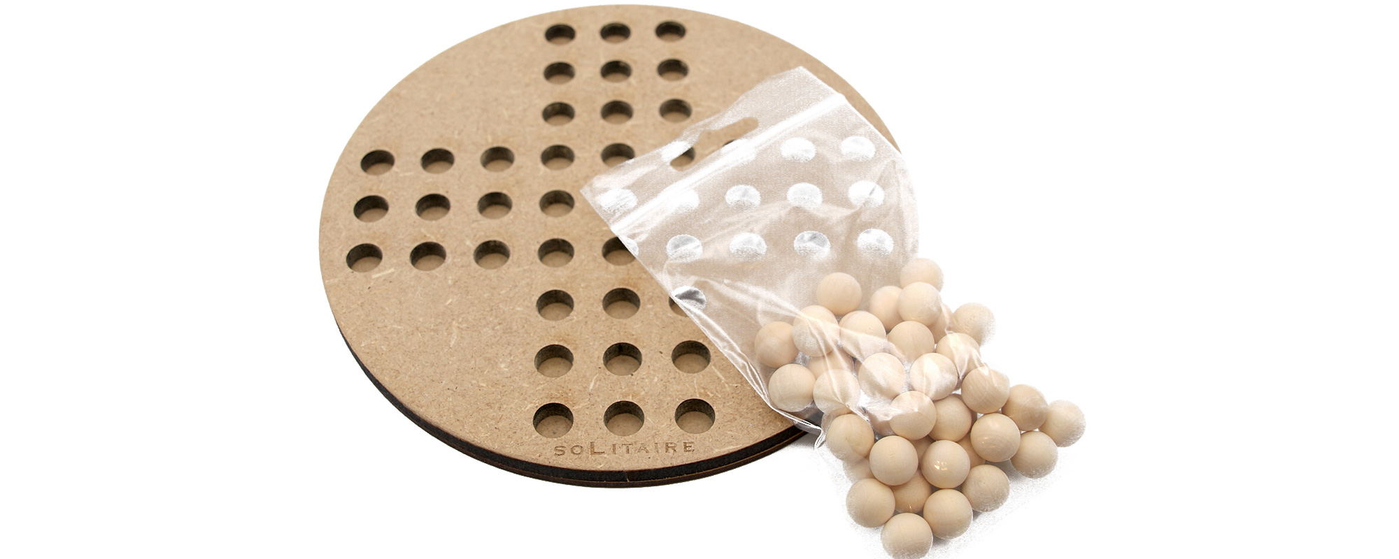 Jeu en bois du solitaire en version allemande avec 44 billes en bois.