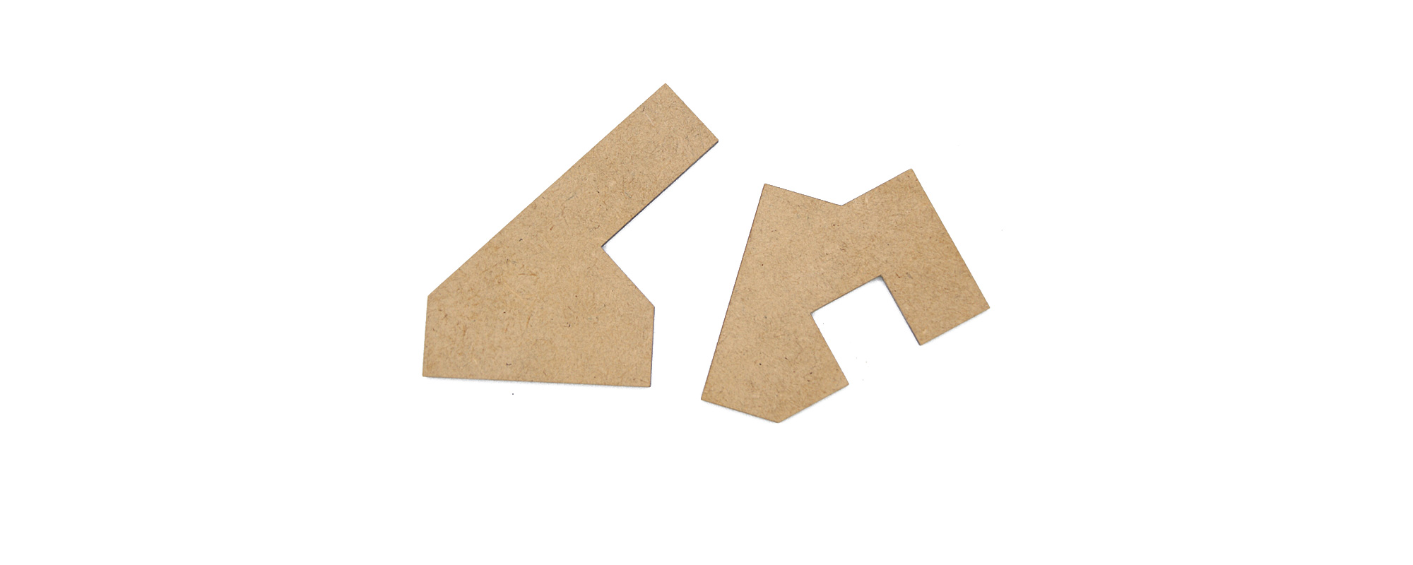 Placer les 2 pièces pour former une figure symétrique, à plat sans superposition.