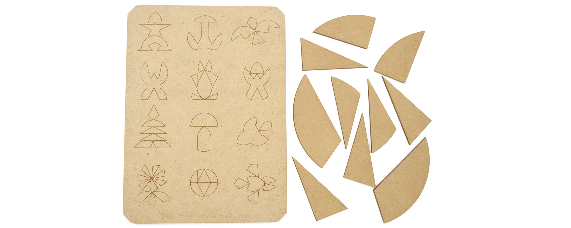 Jeu réalisé avec une découpe laser et du médium, collage avec colle à bois. Conçu en France, en Limousin, en Haute-Vienne.
