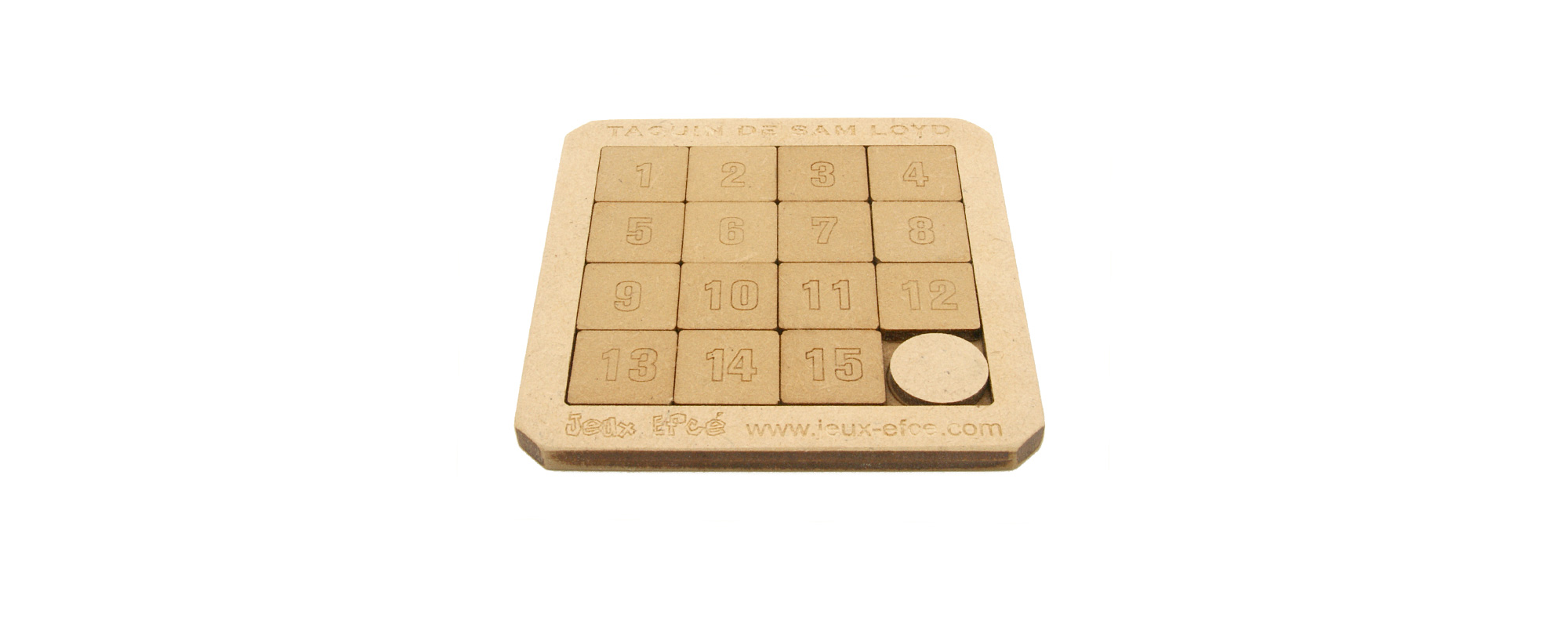 Le taquin est un jeu solitaire en forme de damier créé vers 1870 aux États-Unis. Sa théorie mathématique a été publiée par l'American Journal of mathematics pure and applied en 1879. En 1891, son invention fut revendiquée par Sam Loyd, au moment où le jeu connaissait un engouement considérable, tant aux États-Unis qu'en Europe. Il est composé de 15 petits carreaux numérotés de 1 à 15 qui glissent dans un cadre prévu pour 16. Il consiste à remettre dans l'ordre les 15 carreaux à partir d'une configuration initiale quelconque...