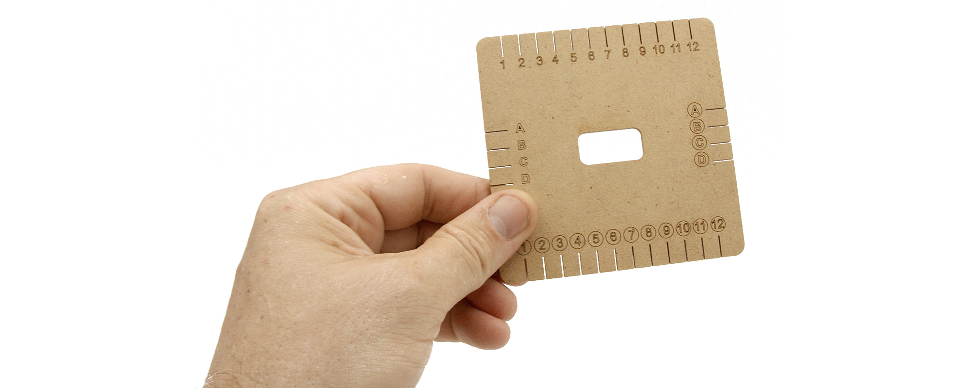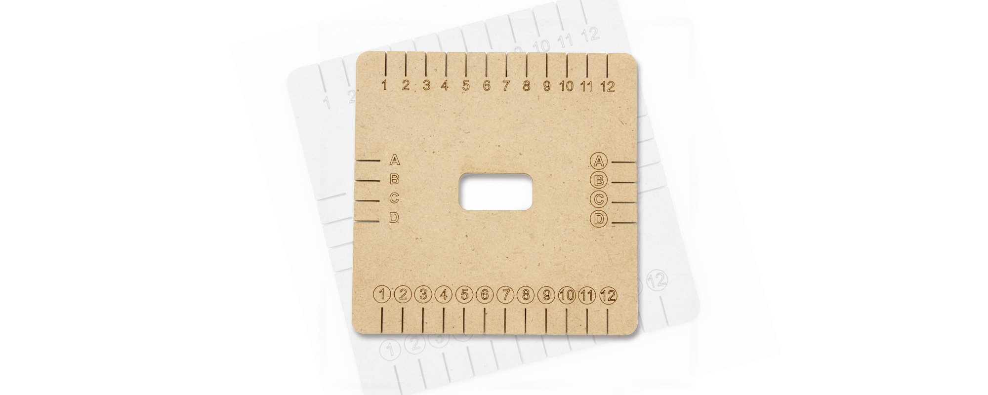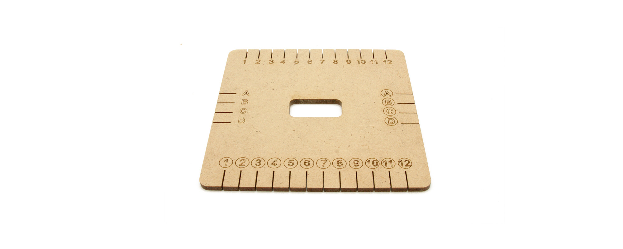 Carré en bois avec 32 encoches pour tresser des bracelets à plat.