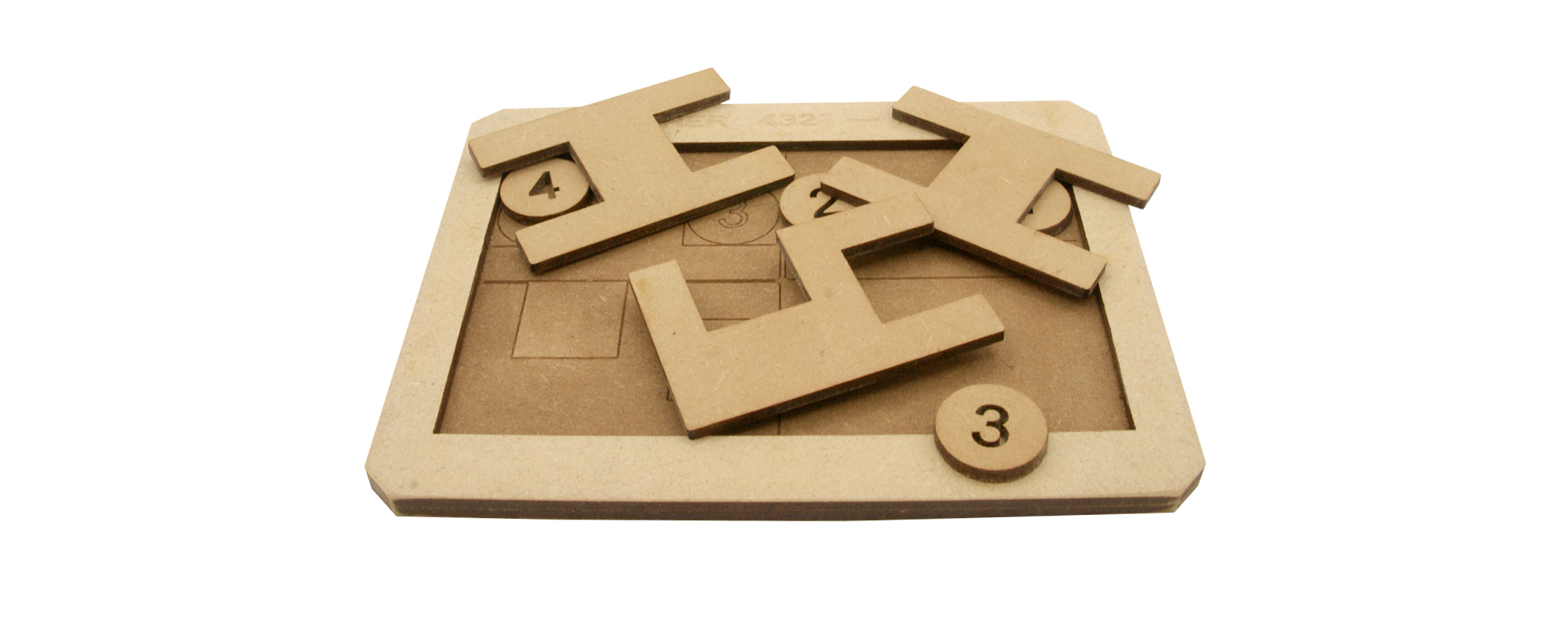 Jeu réalisé avec une découpe laser et du médium, collage avec colle à bois, teinture avec du brou de noix. Conçu en France, en Limousin, en Haute-Vienne.