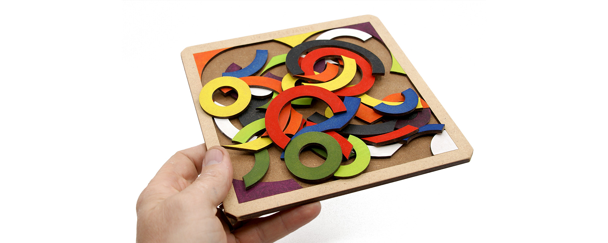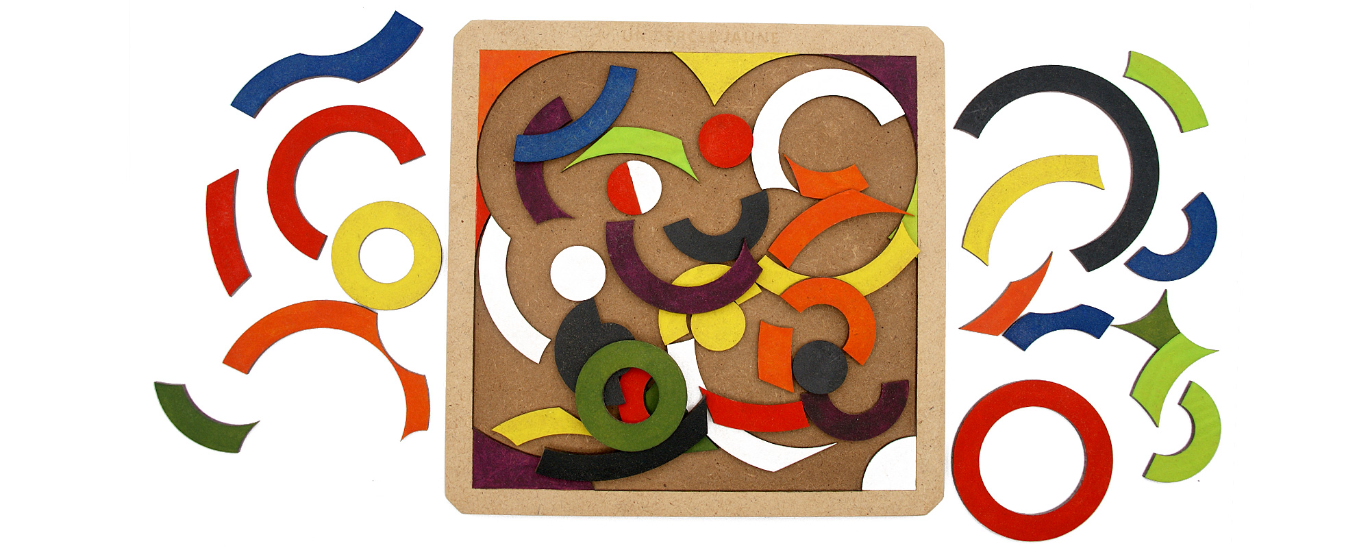 Clin d'œil fait au travail de Sonia et Robert Delaunay, sur le tableau Rythme, joie de vivre visible au centre Georges Pompidou. Remplir la forme proposée avec les 42 pièces. Trouvez votre harmonie. Plusieurs compositions colorées sont possibles.